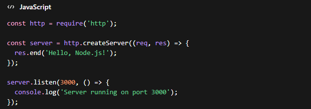 Untuk pemula, memahami struktur dasar Node.js sangat penting karena menjadi fondasi dalam membangun aplikasi backend. Berikut contoh sederhana Node.js: